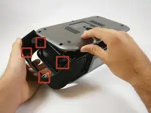 Найдите два пластиковых зажима, удерживающих нижнюю и заднюю крышку вместе.
