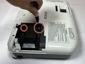 Используйте крестовую отвертку Phillips #1, чтобы ослабить винт 10 мм в правом верхнем углу проектора.