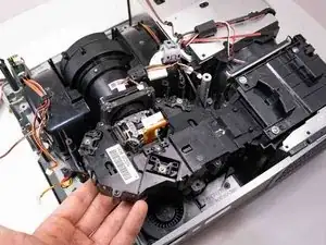 Поднимите материнскую плату из проектора осторожно, чтобы она ни за что не зацепилась.