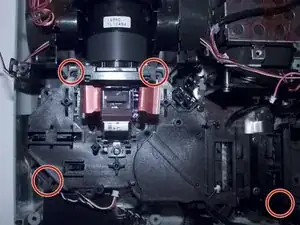 Используйте крестовую отвертку Phillips №2, чтобы снять четыре 6‑мм винта, крепящие проектор.