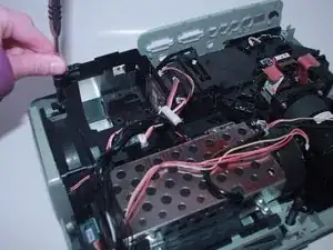 Используйте крестовую отвертку Phillips №2, чтобы выкрутить четыре 6‑мм винта, удерживающие кронштейн вентилятора.