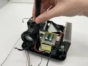 Перед началом ремонта важно знать, что замена объектива включает снятие печатной платы. Этот гид предназначен для вас, если ваш объектив треснул или поврежден и нуждается в замене. Однако, если проекция имеет темные пятна, возможно, нужно провести очистку. Если вы уже сняли печатную плату и только хотите заменить объектив, вы можете перейти к шагу 9. Для этого ремонта вам понадобятся лопатка и отвертка. Хотя шаги несложные, следует действовать осторожно — некоторые компоненты, такие как провода, объектив и заклепки, являются деликатными и могут легко повредиться при неосторожном обращении.
