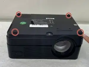 Под резиновыми элементами находятся винты, которые можно удалить. Удалите все четыре винта Phillips #1 размером 1.1 мм с помощью отвертки Phillips #0.