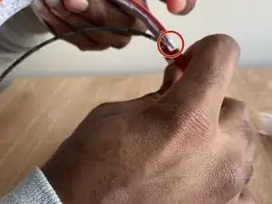Осторожно поднимите приклеенный провод в оголовье.