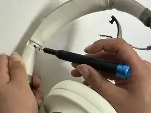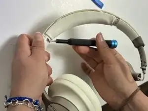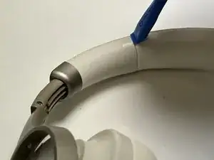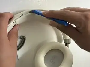 Нажмите наружу и к себе с помощью инструмента для открывания, чтобы отделить оголовье от наушников. Замените, следуя указаниям в обратном порядке.