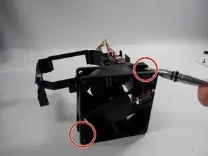 Удалите три винта, показанные на изображении, которые фиксируют рамку вентилятора.