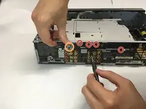 Снимите два винта Phillips длиной 6,5 мм на задней части корпуса устройства.