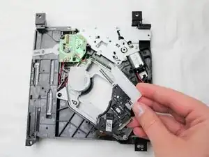 Поднимите DVD-привод из его пластикового корпуса, как показано на изображении.