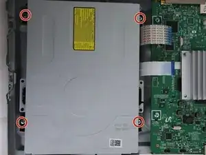 Используйте отвертку Phillips #1, чтобы открутить четыре винта, удерживающие оптический привод.