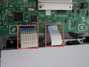 С правой стороны оптического привода находятся два голубых шлейфа. Убедитесь, что вы отсоединили их, отцепив тонкий зажим на материнской плате, а затем осторожно вытяните их из разъемов.