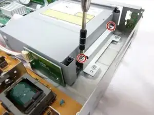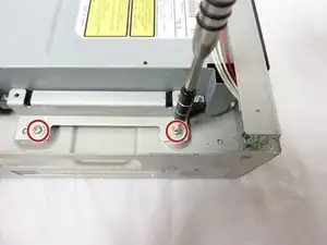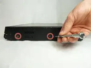 Удалите два винта с головкой Philips длиной 3 мм с каждой стороны DVD-проигрывателя, используя отвертку Philips #1.