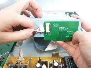 Будьте осторожны, чтобы не порвать ленту, соединяющую зеленые circuit boards.