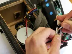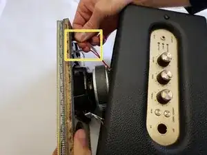 Убедитесь, что вы медленно выталкиваете крышку динамика и не вынимаете её слишком далеко, поскольку она всё ещё соединена со стереодинамиком.