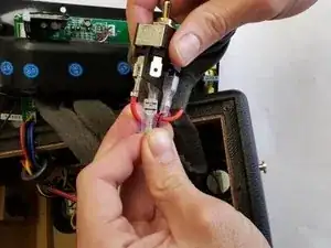 Отключите основной силовой провод от платы управления; это позволит задней части раскрываться сильнее, обеспечивая лёгкий доступ к выключателю питания.
