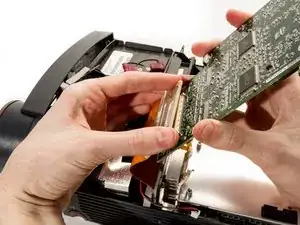 Отсоедините плату DLP от материнской платы, где она подключена большим 100‑контактным разъёмом.