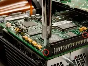 Снимите 2 оставшихся винта T10 Torx 8 мм, фиксирующих материнскую плату к блоку питания.