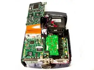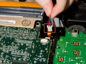 Отключите маленький шлейф, соединяющий плату DLP с материнской платой.