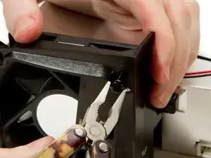 Используйте плоскогубцы с узкими губками, чтобы вытащить втулки, закрепляющие основной вентилятор в его корпусе.
