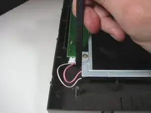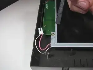 Отключите кабель, соединяющий дисплей с блоком питания, используя плоский конец лопатки, чтобы поддеть разъём и оттянуть его от платы.