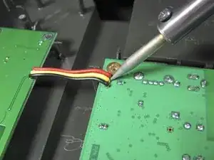 На изображении плата всё ещё присоединена к проводам, но после отпаивания плата будет полностью освобождена от устройства.