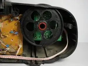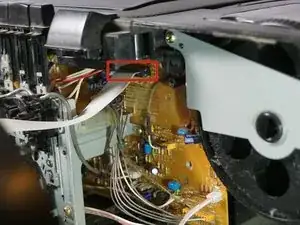 Отсоедините две проводные пары, соединяющие мотор кассеты с основной платой. Затем аккуратно извлеките мотор.