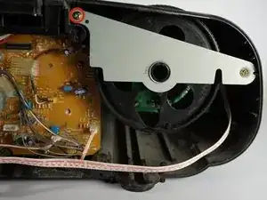 С помощью крестовой отвертки Phillips #1 отвинтите винт длиной 10 мм, расположенный в верхнем левом углу кронштейна колеса тюнера. Снимите металлический кронштейн.