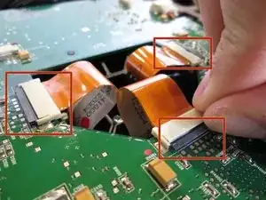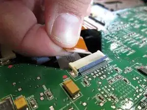 Потяните за коричневые язычки по бокам белого держателя шлейфа и извлеките шлейф.