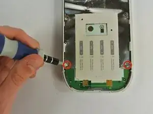Отверткой Phillips #00 отвинтите два винта 5 мм внизу серебряной пластины.