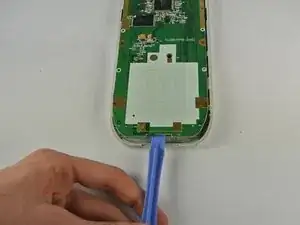 Подденьте небольшой пластиковый лопаточный инструмент под резервную батарею в зазоре слева от неё.