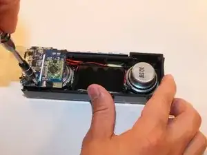 На задней панели (с противоположной стороны от панели с двумя динамиками) открутите все 7 винтов с помощью крестовой отвёртки PH1 (винты: головка PH1, длина 7 см).