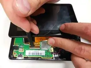 Разъедините соединение между динамиком и платой, аккуратно потянув провод вверх.