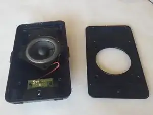 После того как все семь 5-мм винтов будут сняты, снова используйте металлическую лопатку, чтобы поддеть пластиковый корпус от динамика.