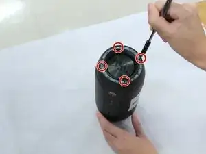 Удалите четыре винта Phillips #1 длиной 7,9 мм вдоль черного центрального элемента устройства между камерой и вспомогательным портом.