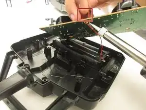 Используйте паяльник, чтобы расплавить красный провод, одновременно вытаскивая его из материнской платы.