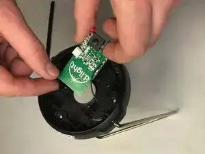 Снимите печатную плату, нажав на монтажные зажимы (показаны в красных кружках) с помощью лопатки.