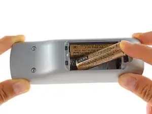 Поднимите пальцем две батареи AA и выньте их из пульта.