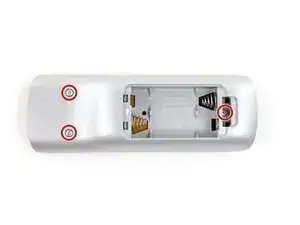 Удалите три винта Phillips #00 длиной 9 мм, расположенные на обратной стороне пульта.