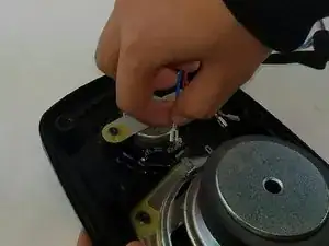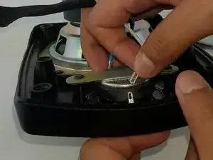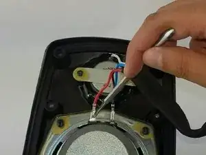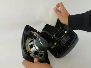 Используя пластиковый инструменты для открытия, подденьте низ динамика, чтобы разделить две части динамика.
