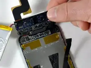 Плата логики и батарея теперь могут быть полностью отделены от остальной части iPod.