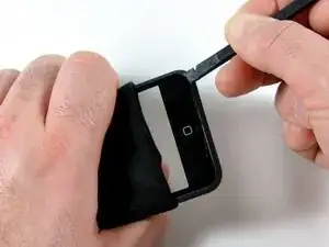 Открытие корпуса — сложная и потенциально опасная операция. Требуется значительное усилие, чтобы ввести пластиковый инструмент для вскрытия в шов между частями корпуса. Корпус может быть повреждён, если этот шаг выполнен неправильно. Убедитесь, что не повредите себя при открытии iPod.