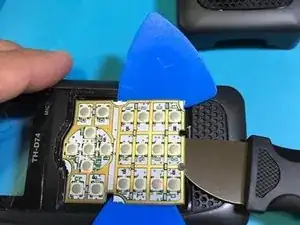 Продолжайте аккуратно поддевать — появится многокнопочная плата под ней (с медными контактами).