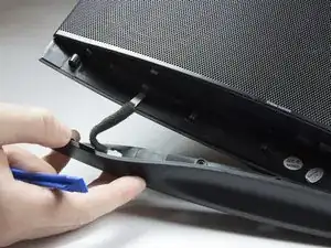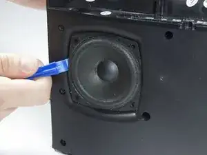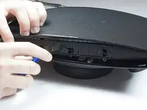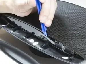 Переверните динамик и используйте пластиковый инструмент для открытия, чтобы снять верхнюю панель с динамика.