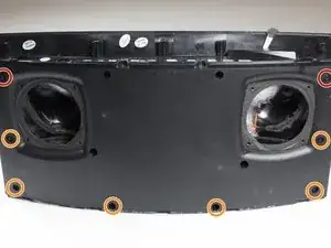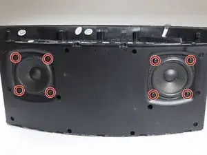 Удалите восемь винтов по 10 мм, которые окружает динамики. Четыре винта будут вокруг каждого динамика.