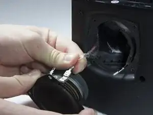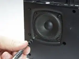 Осторожно поднимите каждый динамик из корпуса. Возможно, придется разорвать легкий клейкий герметик.