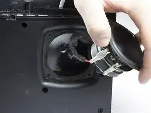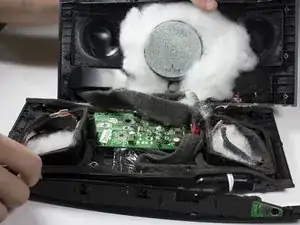 Удалите белый звукопоглощающий материал из динамика. Обратите внимание на его расположение и отложите в сторону.