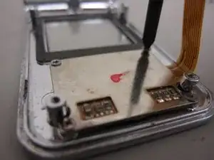 Осторожно поднимите пластиковую защёлку, которая фиксирует гибкую ленту на плате.