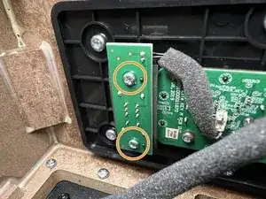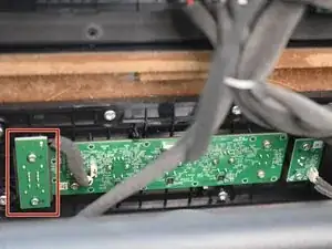 Найдите печатную плату переключателя питания с левой стороны над сабвуфером.