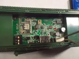 После того как аккумулятор и задняя крышка были успешно сняты, используйте паяльник. Чтобы снять переключатель включения/выключения с печатной платы, нагрейте предыдущие припои до их расплавления.