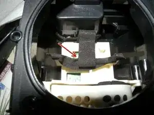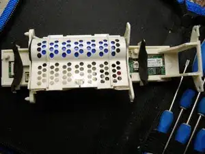 Снова переверните колонку и аккуратно извлеките кремовую пластиковую рамку, в которой размещены электронные компоненты (показано на третьем фото).
