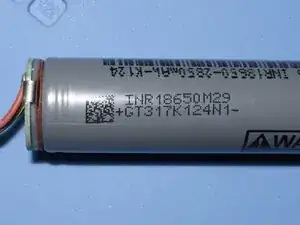 На третьем, завершающем фото, показана оригинальная батарея без крышки! Это элемент INR18650 на 3,7 В с платой контроллера заряда, установленной сверху. Теоретически можно срезать оцинкованные выводы и точечной сваркой соединить их и плату с новой батареей, а затем изолировать термоусадкой!
